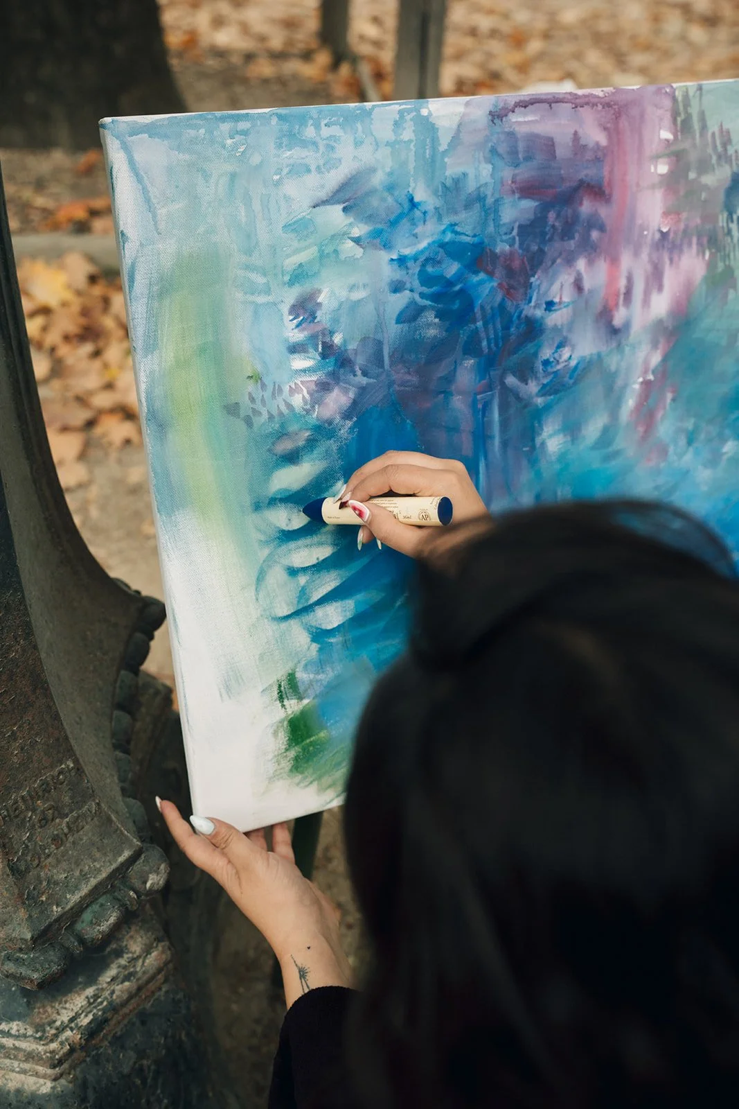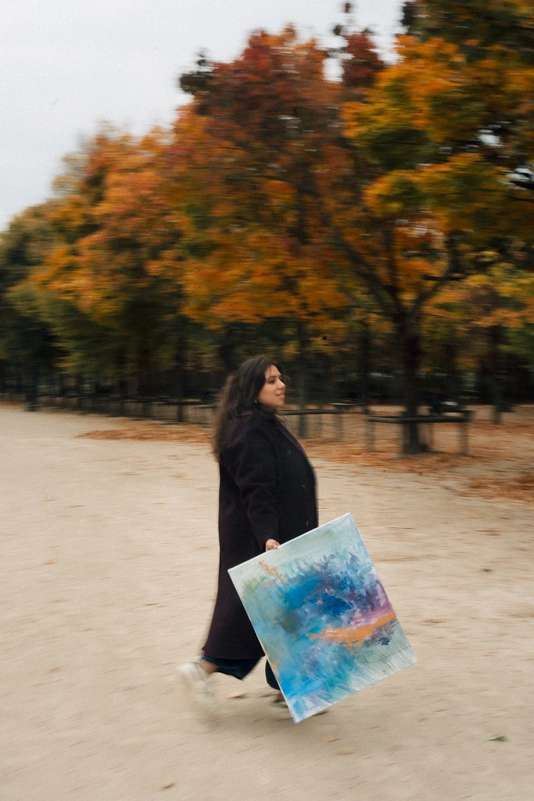 Her practice spans over a decade of creative inquiry, from early explorations of how a blind person might experience color, through series examining women's freedom, shadow work, spiritual alchemy, and the sensory vocabulary of the South Asian diaspora. The thread across all of it is intuition: trusting what arises, following what pulls, making space for what wants to be expressed.